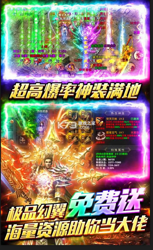 同时游戏采用了两种职业战神和法神,给你无比爽快战斗体验。