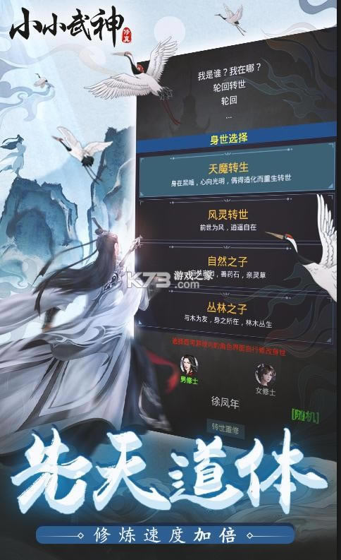 《小小武神》文字修真是一款修真风格的高自由度的文字放置游戏,拥有着恢弘的修真世界,完善的修真体系,轻度不肝,真实的修真体验,只要你有向道之心,即可登临大道绝巅,采用卡通游戏画风,画面精致,为玩家带来非常好的游戏体验感!