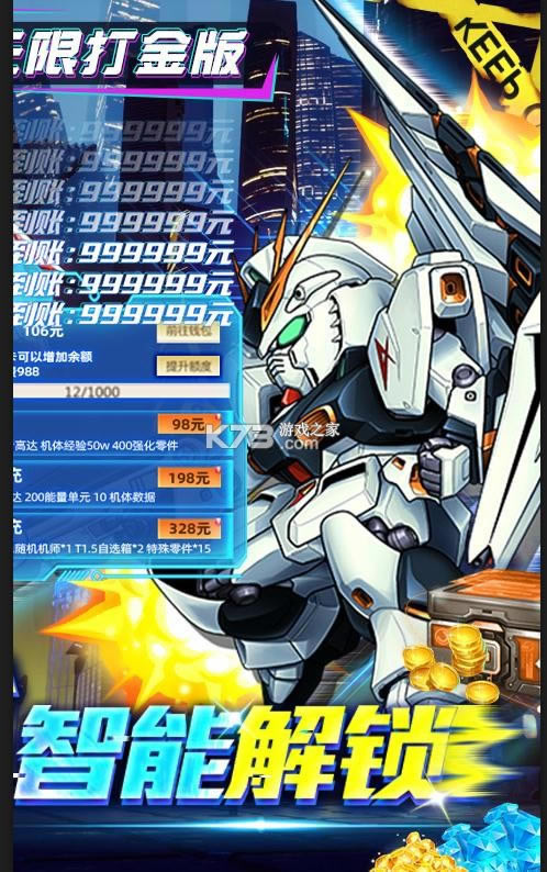 高达刷充礼包:金币*99999 尼姆合金*10 转换芯片*10