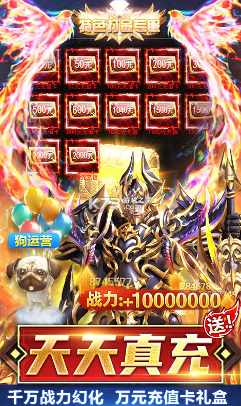 ★专属‘鸡你太美策划’‘狗运营’‘狗客服’各1000万战力幻化,专属满V特权,上线统统送给您!!版本专属福利真充打金副本,真充碎片刷不停!