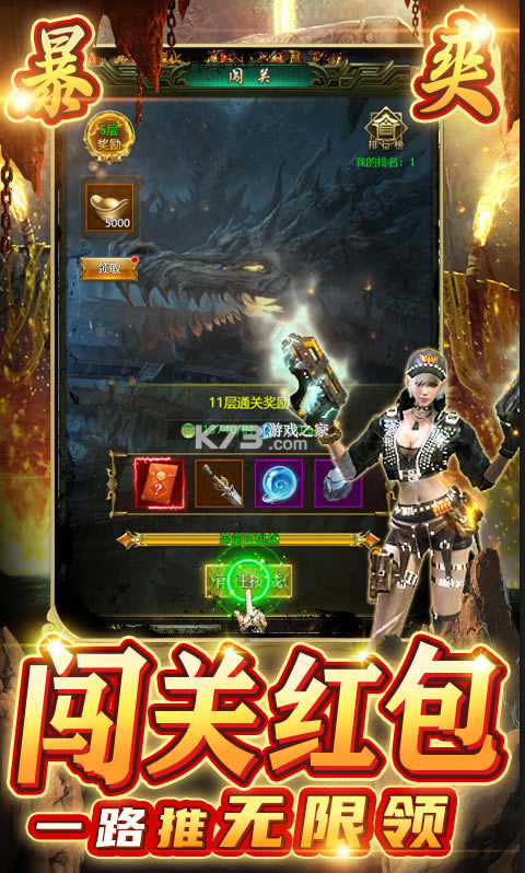 ★闯关福利:闯关可掉落红包,一路推无限领,元宝多到想买什么就买什么!