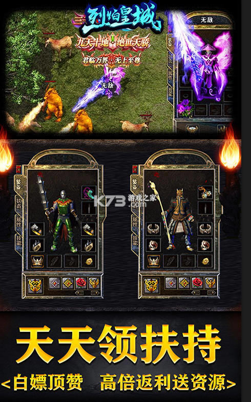 《烈焰皇城》每日登录领扶持奖励,领超多的会员奖励,元宝无限领,福利超级多,刀刀切割独家的西游副本,登录后天天扶持领扶持令牌,每日必掉宝,人人就来享刀刀切割,领取满级的会员赞助。