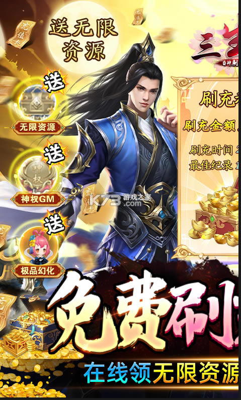 《三生诀》上线就送至尊VIP20,GM扶持礼包在线领1万真充卡,不肝不氪尽情畅玩,累计就送30万真充充值有多少送多少,手速超级快,免费来刷充值卡,每天在线抽充值福利超级多,无门槛激活乐趣超多,充值全靠手速。