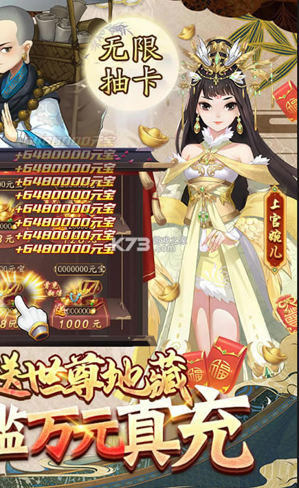 ★上线送海量充值,使用立刻获得海量元宝,海量元宝花不完。