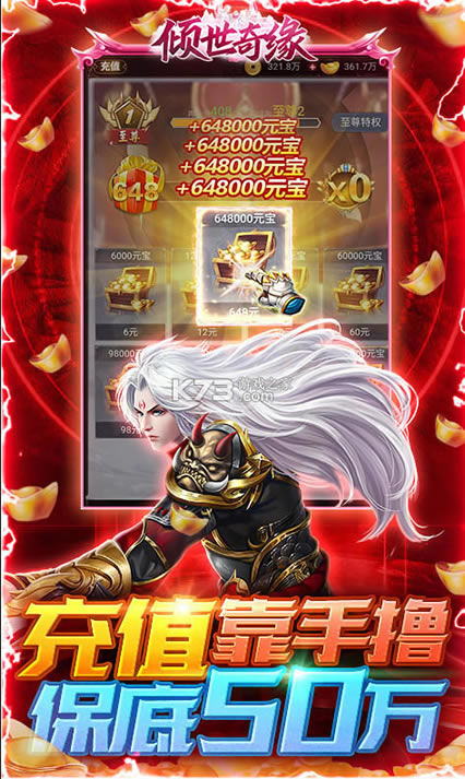 《倾世奇缘-手撸50万充》是一款特效华丽建模非常精致的养鲲仙侠手游!为手速党精心策划每日5秒真男人的充值福利活动!免费充值点到手软!并且激活对应累充活动!每天在线即可挂海量真充卡碎片,无门槛使用兼免费合成简直福利到爆炸,拿着海量福利来培养你喜欢的异兽,带您体验创号即毕业的超爽体验!