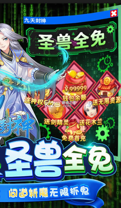 《九天封神-GM圣兽全免》是一个以经典西游为题材背景,并融入传统习俗打造的经典国风回合制手游。每日抓鬼、任务获得充值额度,额度可在免费直充界面进行真实充值,可激活游戏内累充,GM商城所有圣兽免费拿,上线送绝版紫霞仙子时装!上线还送无限银币,无限资源随便买,并且我们在重温经典的同时我们加入了无限转盘,每天活跃轻松拿到抽,西游币充值卡抽到手发软!