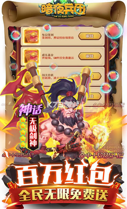《暗夜兵团》送成长基金和超值特权卡,轻松领取超级多的福利,送1千连抽,英雄自由选择,特权福利一键来激活,欧洲神话角色都将登场,随时玩随时停,超多收益不断,奖励更丰厚,非常棒的游戏体验感,兵团出击灵活的来搭配,福利无限。