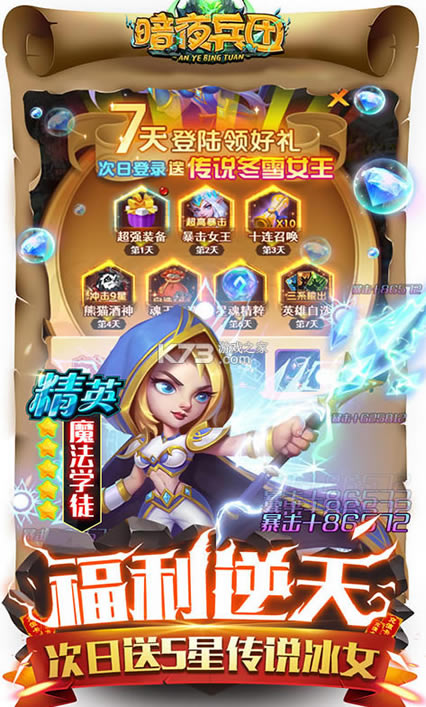 ★萌新福利加码,次日登录送5星传说级冬雪女王,完成任务送5星神话无极剑神!