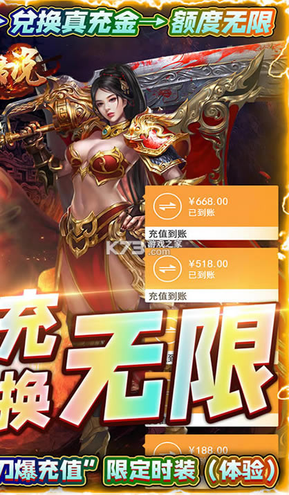 ★全方位免费直充,击杀boss掉落大量实物道具,实物道具可以兑换真充金,真充金可以代替RMB去指定充值界面进行充值,可激活线上每日充值和永久累充活动