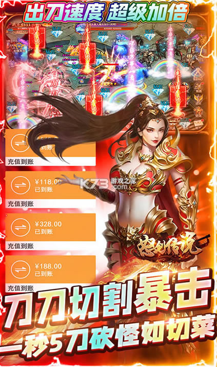《怒剑传说》刀刀爆充值领取额外的奖励,一秒5刀刀刀切割,刀刀暴击,实力暴涨,包含了很多的实物道具,秒升百级实力暴涨,兑换真充金,每日领充值和体验永久的累充活动,不受等级的限制,轻松来这里制霸全服。