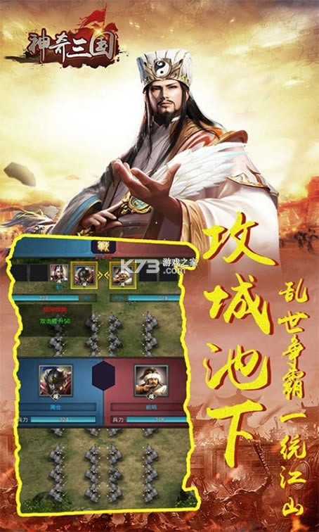 这是一款以三国历史为背景的策略手游,玩家可以在游戏中升级自己的城池,收集三国名将,通过挑战经典三国战役和野外流寇来提升部队战力。玩家将分属不同的国家,对城池展开争夺,获胜者可以扩展本国版图,最终攻占皇城洛阳,统一天下。