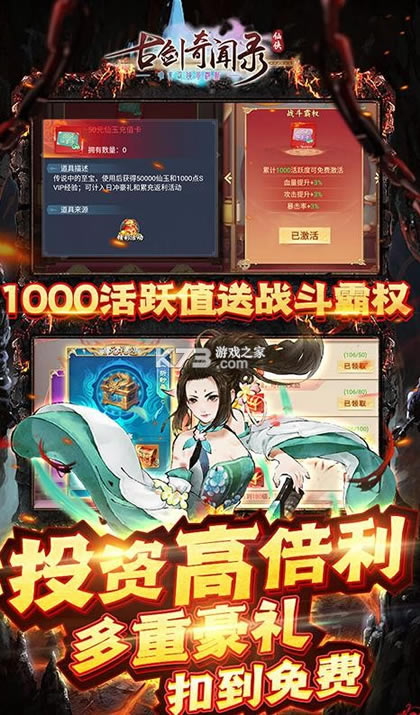 的福利活动不容错过,0元购、百倍返利、全民狂嗨、仙器夺宝……参与这些活动,助你飞升成神!
