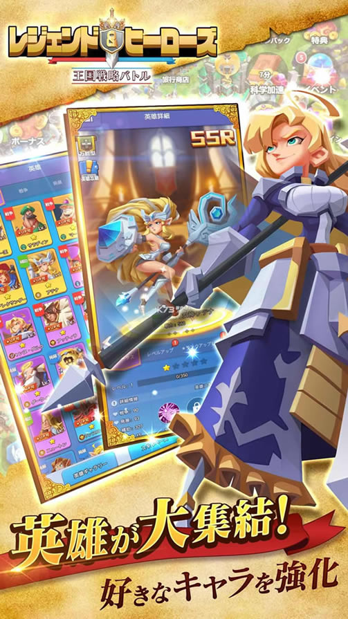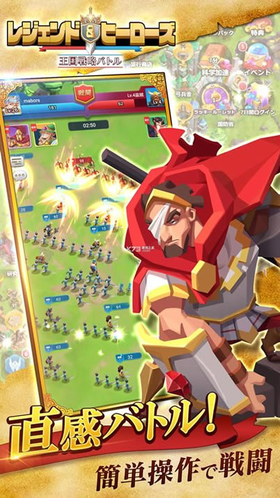 《传说与英雄(レジェンド&ヒーローズ)》是款王国战略题材的策略手游,游戏中登场了许多不同类型的英雄,每名英雄拥有不一样的阵型,操作你的英雄带领着不同的军队,与其他势力进行战斗,并建造升级你的城堡。
