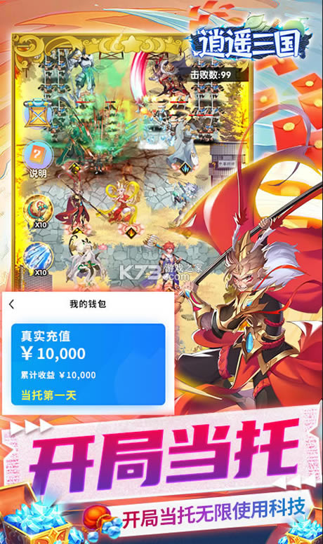 《逍遥三国》开局当托领免费的特权,领取首充和月卡终身卡以及万元额度等福利,无限后宫,局域超强的策略性和战术性,放置挂机带来全新的创新的玩法,领取超级多的福利,玩法更出色,丰富的多元化的地图,各种名将进阶养成。