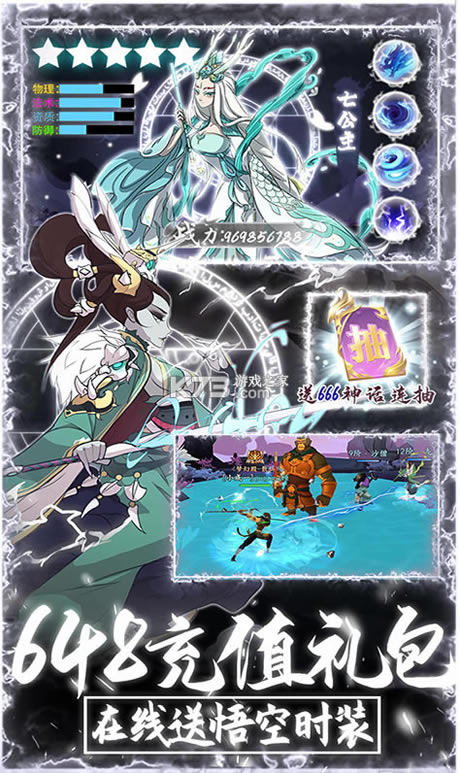 ★上线赠送Vip6、648充值卡礼包、悟空金甲时装、极品坐骑