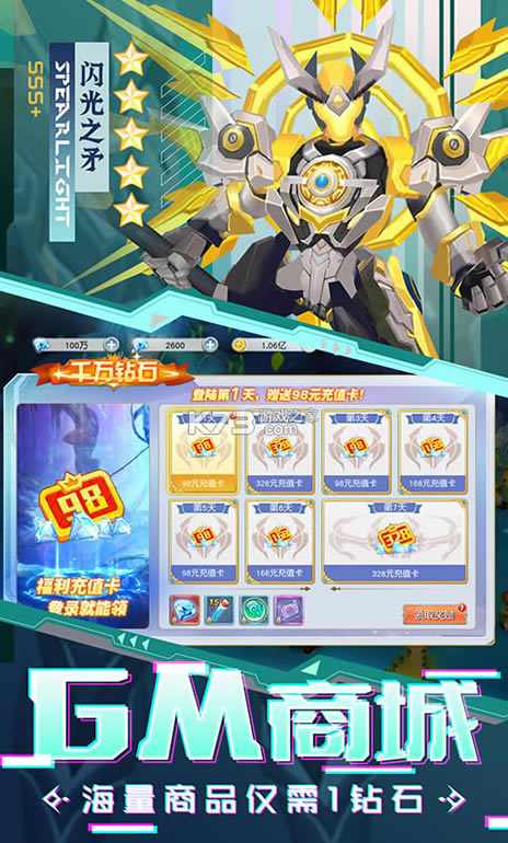 充值比例:1:10000(钻石)1:100贝壳(GM货币)