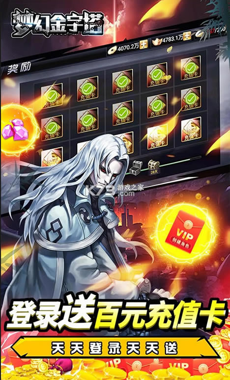 《梦幻金字塔-GM真全免》是一款以激爽战斗为核心的横板动作闯关手游。福利大幅提升,满VIP,DNF暴击字体40分钟 *1,188888元宝,1000万铜钱,转生丹*1,登录即送GM经验,天天送百元充值卡!让你玩到爱不释手!