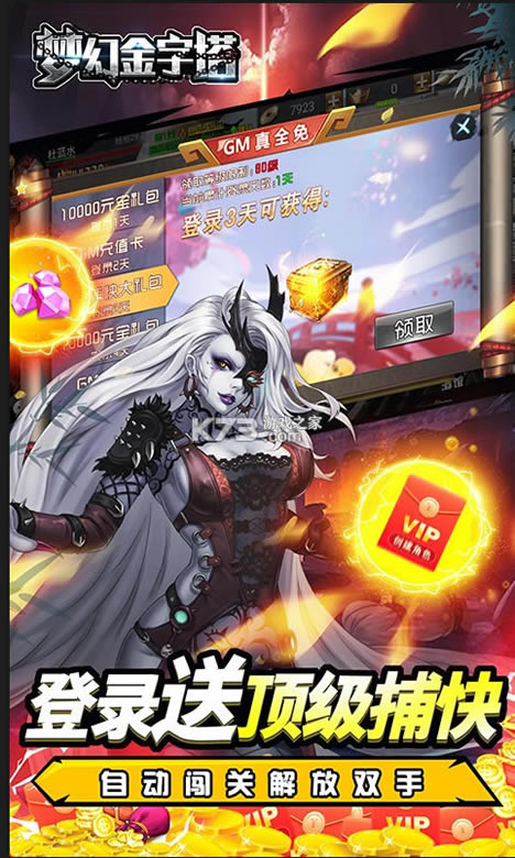 《梦幻金字塔》连续登录即可领取gm特权,极品圣兽随心换,平民玩家们翻身不是梦,免费领取gm特权,活跃即可领盲盒,道具丰富帮助你横扫地图,gm真全免,天天送百元充值卡,让你玩到爱不释手,融合了创新的养成,新增大量副本释放双手。