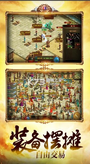 《金装裁决之复古传世》经典回归热血来袭,装备自由的摆摊夺宝pk沙城争霸,完美的诠释再现中州城,每个细节都反复的雕刻,全新的战法道三大职业的玩法,在美术层面上精心的打磨,在细节上快速的提升,开启沙城争霸赛。