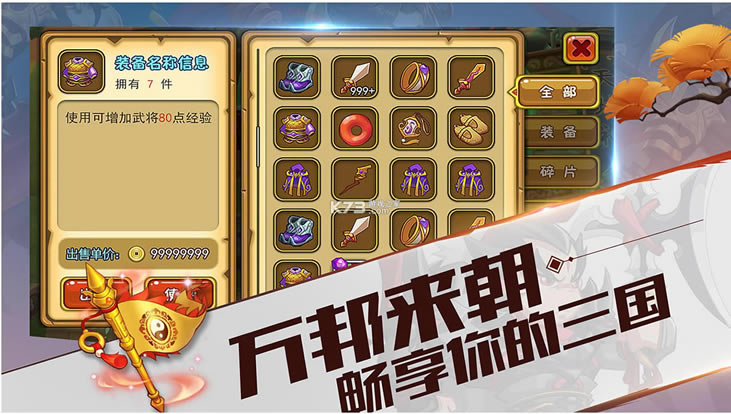 游戏画面精美,采用Q版卡通人物设计,为您体验小说般的三国世界,还原各种三国经典人物