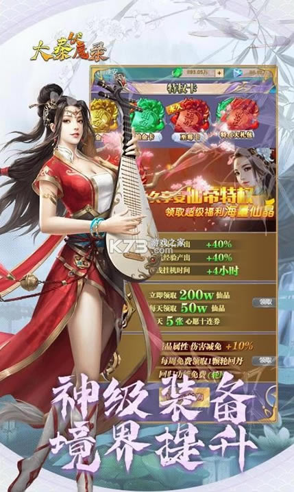 ★签到升级可领大礼包,珍惜装备,海量仙晶,更可领真充券!