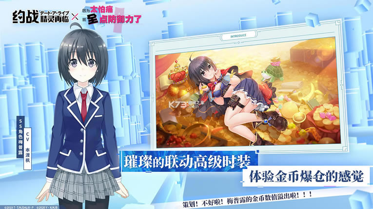以日本动漫约会大作战为原型,高度还原了动漫中的世界观、画风以及角色形象,并且游戏采用了核心的文字+冒险元素,并在这里你可以体验有趣的模拟养成和社交轻松玩法,结识众多的好友。