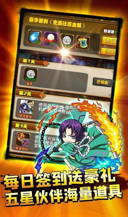 角色设计采用Q版画面,以立体人物形象带给你最美的视觉享受、最轻松的操作、最具满足感的全方位游戏体验。两大主角,超过100个武士人物,自由搭配组合最强阵容;更有游戏独创的连锁技能,让你尽享爆屏的快感。