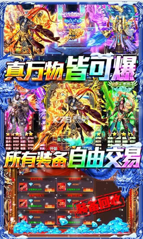 4.充值比例1:1000,首充双倍超高返利,丰富的线上福利和线下活动双重出击,福利不停歇!装备全部秒回收!满地光柱和充值,海量钻石拿到手软!装备全局自由交易!所有装备材料全靠打!