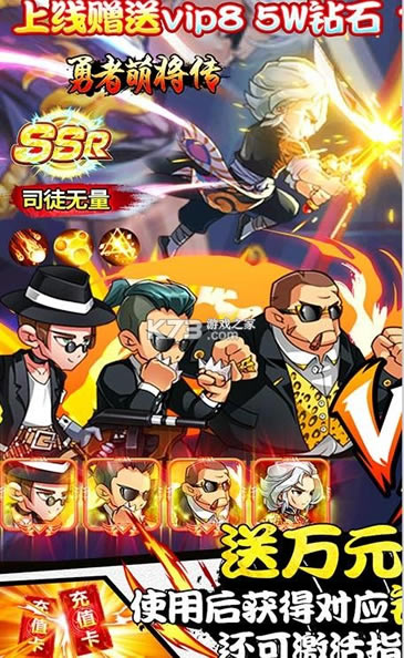《勇者萌将传-0氪送神将》全部首充3倍,上线直接赠送VIP8、50000钻石、100万金币,还有万元真充卡,使用后增加对应钻石和VIP经验,可激活指定运营活动,更有S级英雄(指定礼包码:vip666),推图无压力,英雄招募拼死暗改,10次10连抽保底s级英雄,每天定时定候领体力,在线奖励领钻石,签到领取s级英雄碎片,七日壕礼大放送,主角进阶卡、武器装备、各种丰富道具,还有s级英雄4选1,首充送s级英雄,福利直接拉满,战力狂飙爽翻天!