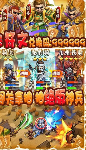 采用Q萌卡通的游戏风格画面十分精美,运用兵种的互相克制联系让玩家可以非常自在的在战斗中指挥作战,并占据更加多的优势。在游戏里玩家需要收集武将派兵布阵征战四方,杀出一片属于自己的天地。