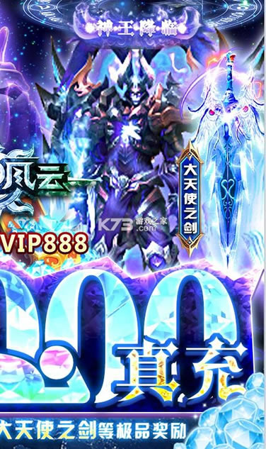 ★创角即送VIP10、大天使之剑、绝版称号:VIP888领真充、38888充值红钻、188W蓝钻。