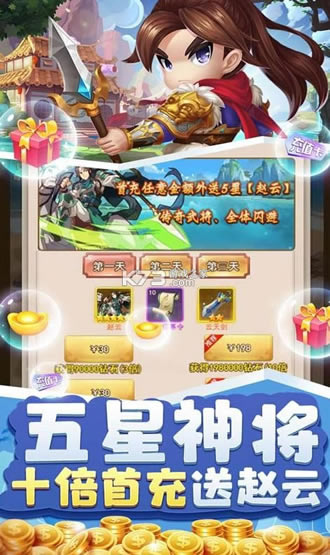 4、首充任意金额送超强武将赵云,助力主公快速通关领充值!