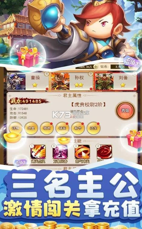 经典三国剧情,超清画质,各种文臣武将人物全数登场,自由进行各种刺激的招募强大商店系统,全新活动期待你的加入,探索宝箱系统,全新奖励领不停