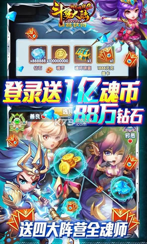 ★上线送全魂师,八大斗神,四大阵营,阵容任你搭配。