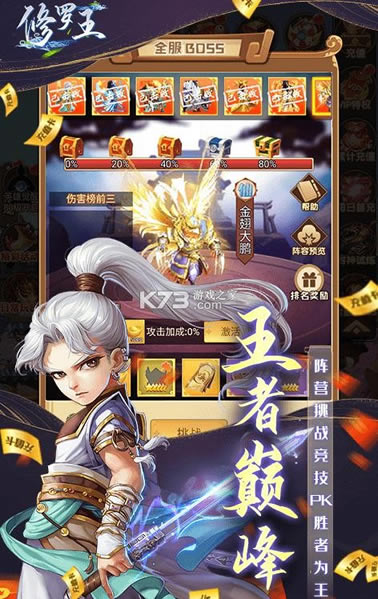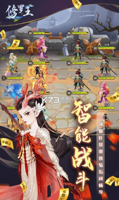 《修罗王》精美的游戏画风可爱的游戏角色,华丽的招式,沉浸的体验感,推图领取海量的资源,排兵布阵,阵营征战,强力助阵,闯荡三界,感受三国的游戏魅力,送豪礼数量多奖励更丰厚,送橙色元神,买到就是赚到。