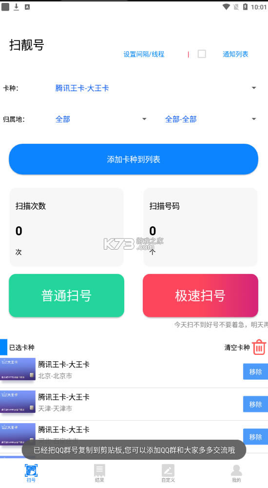 是一个可以扫腾讯王卡、阿里大宝卡、米粉卡、歪卡等的扫号软件