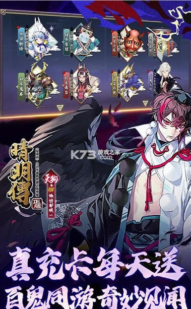 《晴明传》正版授权无限抽SSR游戏,再送万元勾玉的玩法,每日送体力特定式神秒天秒地,累积送线上线下的活动,海量的养成资源,充值即可抵扣,完成任务即可每天送送送,超豪华声优来袭,剧情高度还原,打造唯美的3d场景。