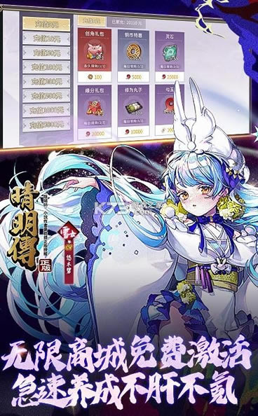 新手礼包:勾玉*1000、修为大福*10、铜币*100000