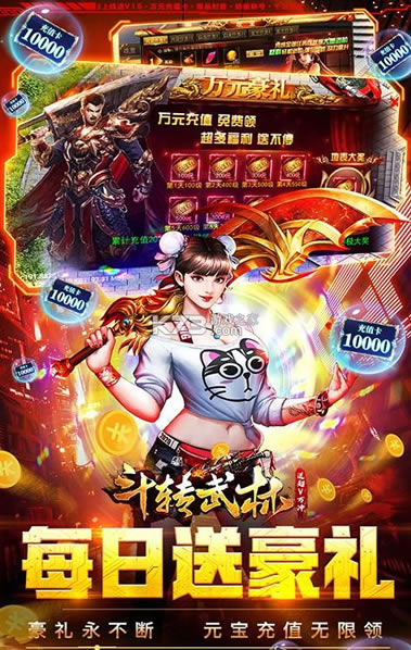 《斗转武林》上线送万元充值和超多的元宝,上线送福利轻松的杀怪,超v特权商场培养宠物轻松刷怪,组建工会进阶元神,趣味的玩法,无限爆充值,散人天堂,送V万冲激爽boss,满屏光柱捡不停,超高爆率每日领豪礼。