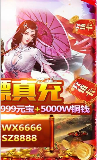 ★上线赠送橙色伙伴无忌,VIP9,10W真元宝,5000万金币。江湖路远,少侠岂能囊中羞涩!