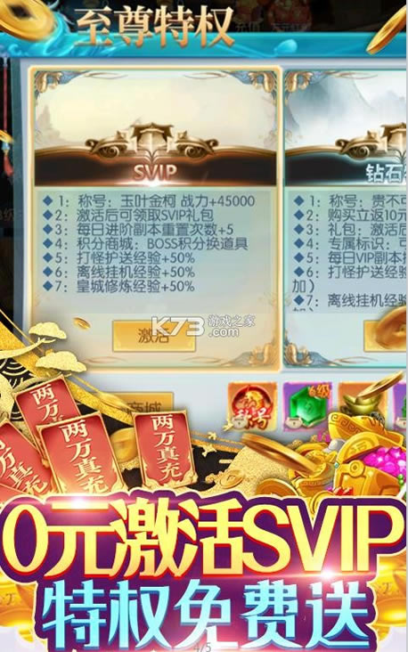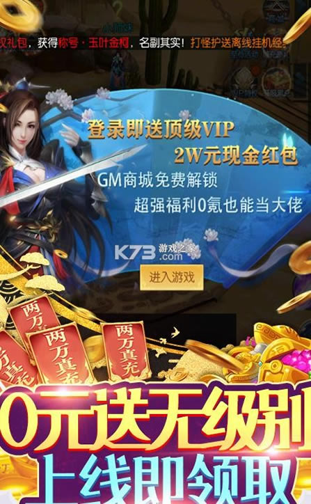 1、上线送满级VIP,SVIP,88888元宝,68888绑元!