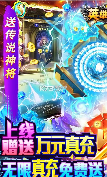 《英雄霸业-0元赚充值》是一款0元党首选,融合战、法、道一体的单职业即时战斗传奇巨作!首款真正0充赚充值的良心手游,首日在线送充值、升级送充值、登录送充值、免费提升vip送充值、击杀指定BOSS送充值、活跃历练送充值,创角再送海量真充卡,真正0元白赚充值!