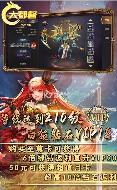 ★210级可以从开服活动的等级返利中领取45元钻石卡直升VIP18!