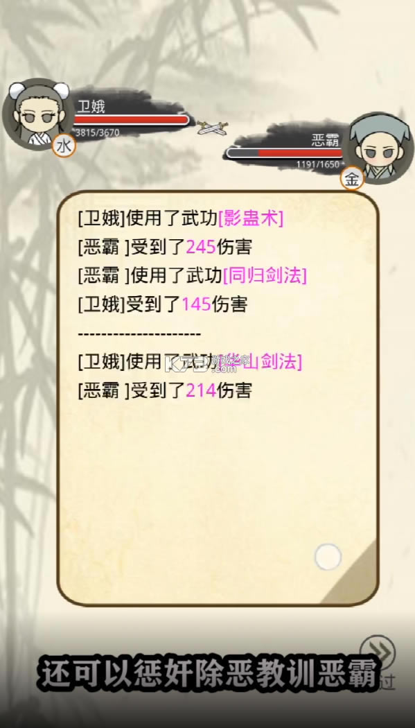 江个湖这款游戏采用Q版手绘风格,能够用竖版玩法来感受不同的江湖世界,游戏中少不了各种武功招式的习得,还能经营门派,锻造神器,小小的游戏中蕴含着超大的能量。