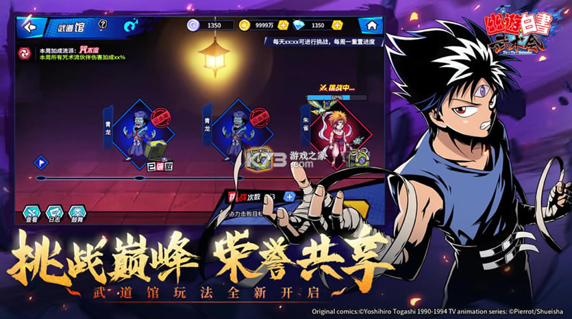流水的岁月,不变的情怀。由富坚义博创作的超人气漫画《幽☆游☆白书》以及由Studio Pierrot制作的同名动画,曾经征服了无数人的童年并成就了一代经典。而今,我们为所有粉丝准备了一份诚意十足的礼物——官方正版手游《幽游白书 武术会》,诚邀广大《幽游白书》粉丝共同参与体验。