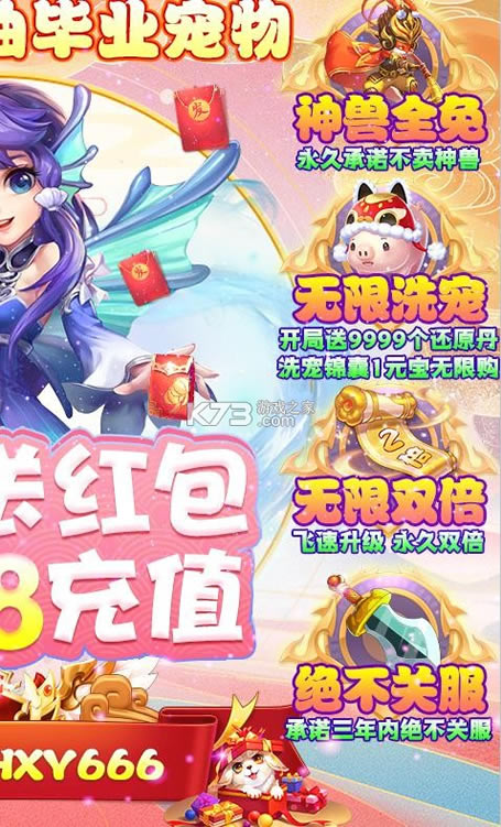 2021必玩的经典回合手游《西游大圣再临-无限合毕业宠》研发五年诚意之作,全新版本火爆上线。创角送SVIP2,金元宝78888,9999个还原丹,幻彩之钻,银币6888888(2级领取红包使用)。上线无限洗宠合宠,变异12技宠开局。1分钟送10连抽保底必出神/仙兽,可用到毕业,永久保值,努力满足回合玩家对极品神宠的追求!升级送无级别神武+极品SSR侍从,升级再送5888元充值红包助力!无需花钱定制游戏脚本,官方内置辅助减负挂机系统,上班挂机让你感受无时无刻炼妖抓鬼合宠的经典梦幻回合魅力!