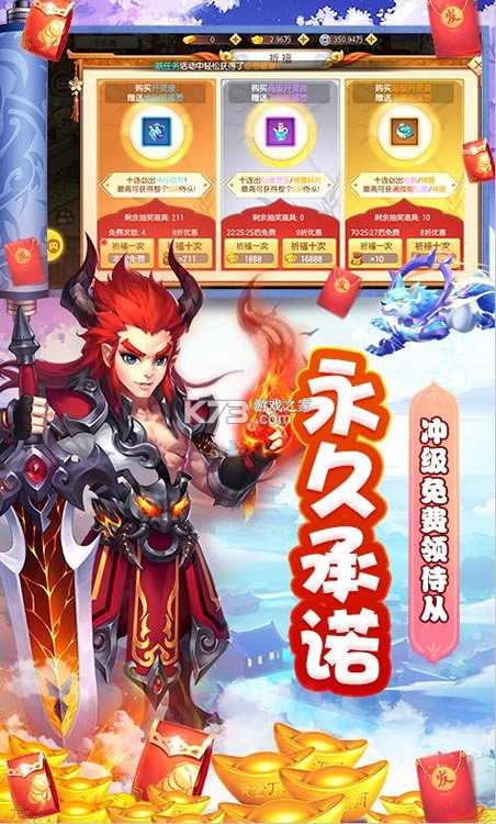 《西游大圣再临》创角就送,升级就送,上千中宠物来袭,组队除魔,帮派联赛沉浸的体验感,升级送武神和SSR侍从,让你挂机也能体验梦幻的回合魅力,不需要花钱也可以畅玩,升级再送5888充值卡福利多多。