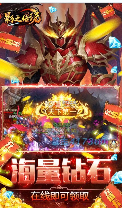 《影之传说》大型魔幻的游戏巨作,超多福利来袭,上线送初始红装和超强神兽,领双倍的福利,免费领vip和特权礼包,创建角色进入游戏,赠送全套的红装宝箱,更多爽快的战斗跨服战斗,超多boss任你挑战,开启奇迹的游戏旅程。