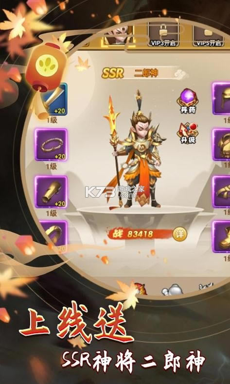 ★建角赠送SSR神将·二郎神、钻石*88888、元宝*88888