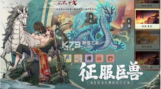 全新国风彩墨美术匠心打造,笔走龙蛇,妙手丹青,山海经典神兽拟人立绘,尽显传统国画人物之美,又有神兽元素完美点缀,一画双形,栩栩如生。